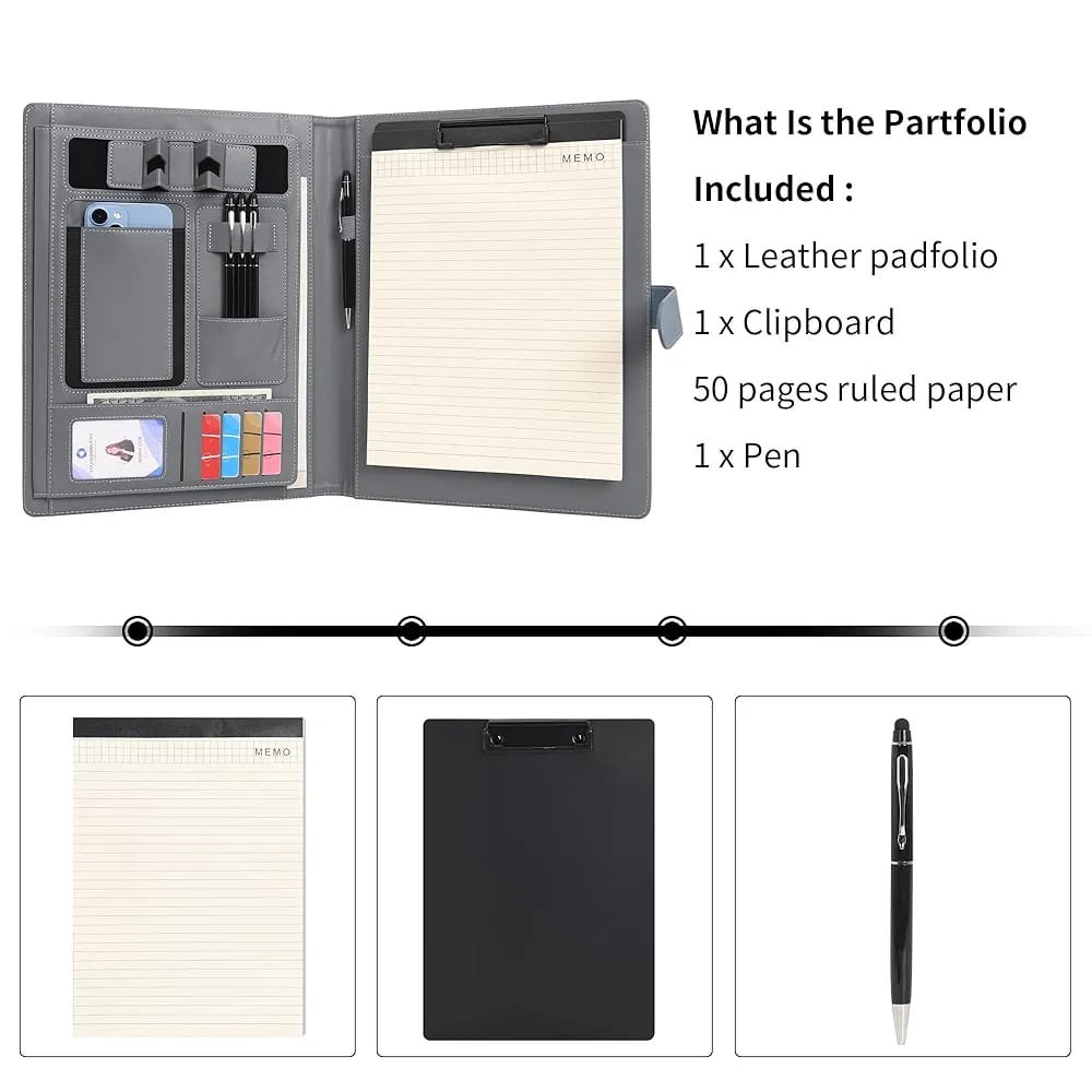 عدد الجيوب: على الأقل 4-5 للورق + 2-3 لبطاقات + حامل قلم